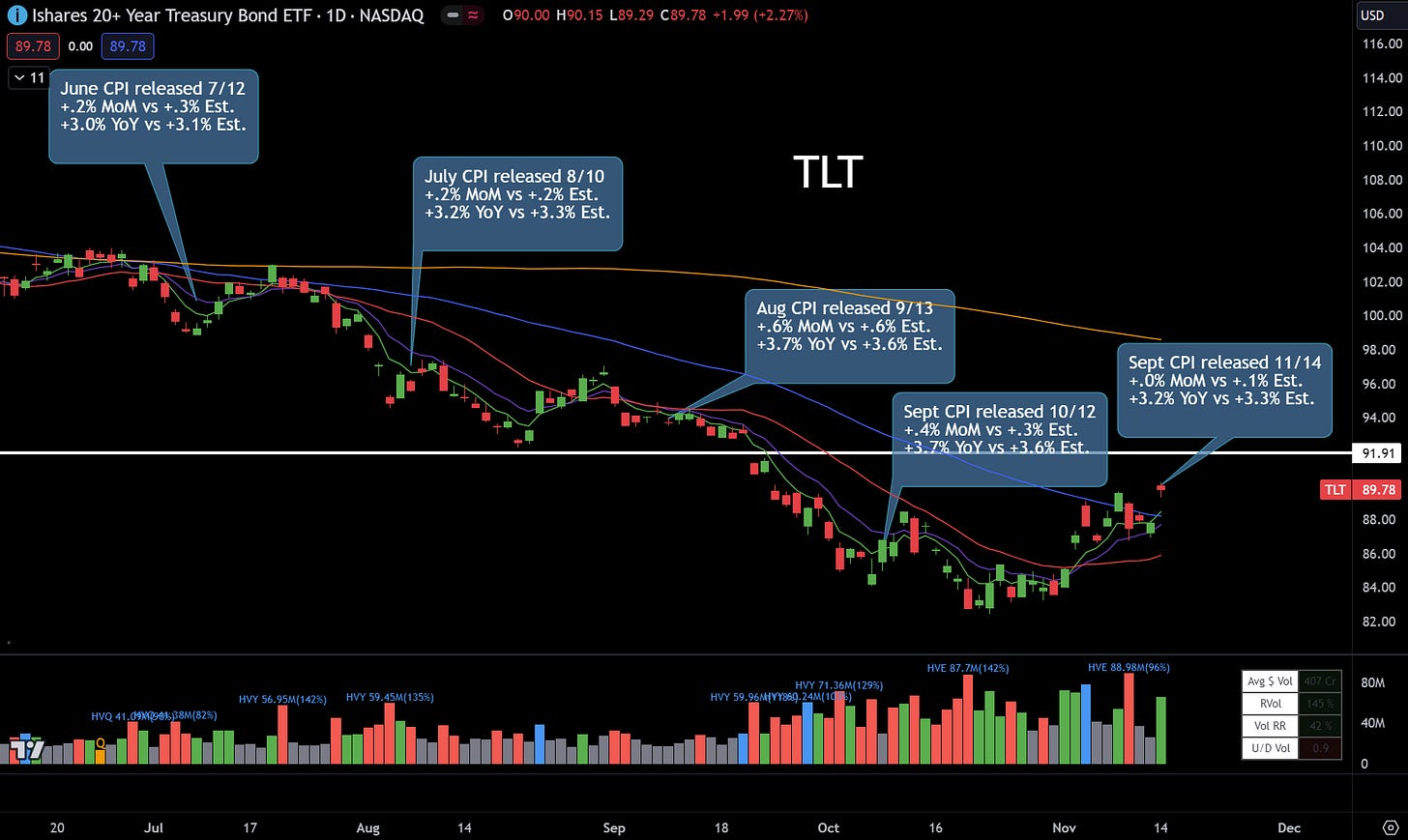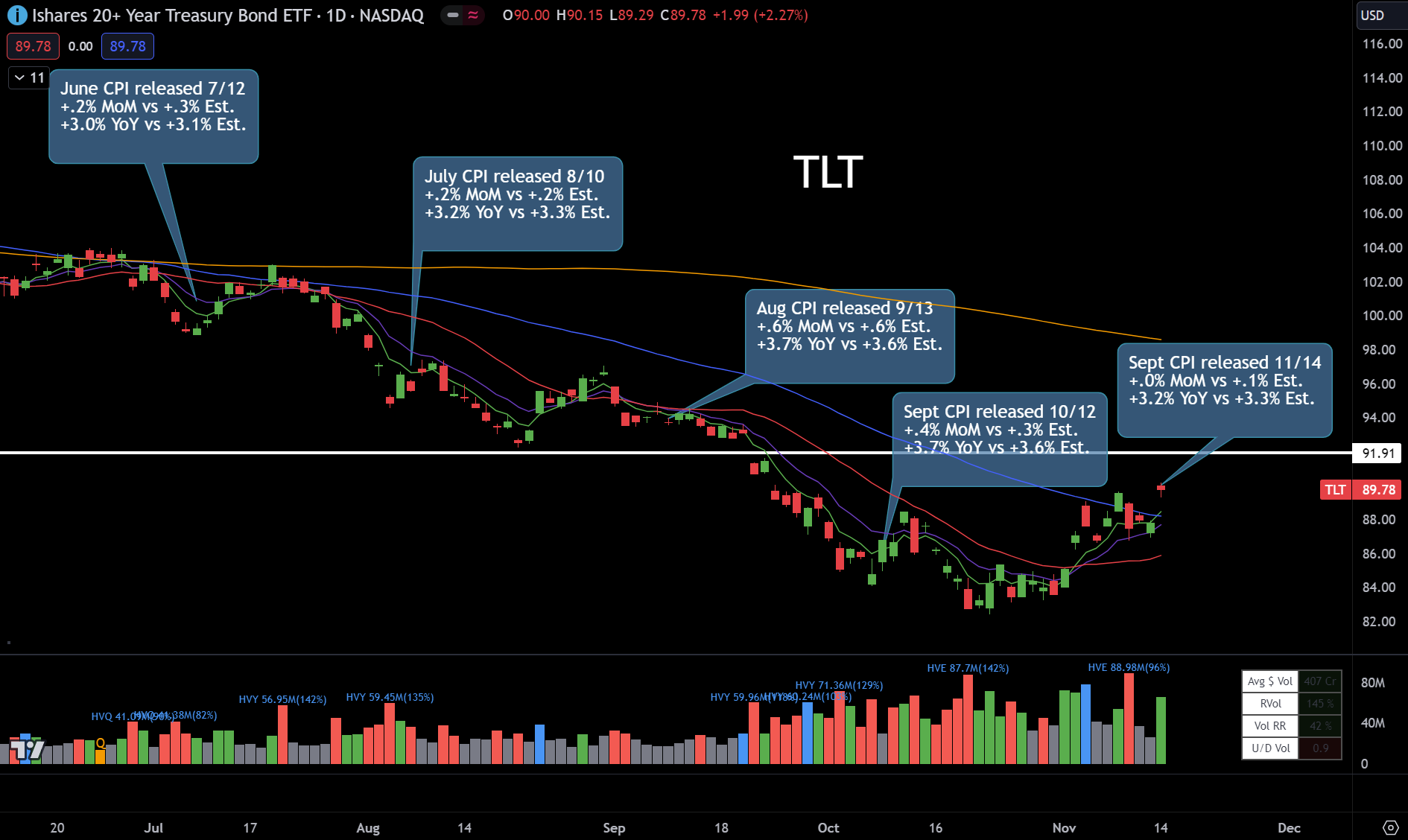 Check out how treasuries have moved in lockstep with the changes in CPI over the last 5 months. Based on this data, we believe that the best is yet to come for TLT👇