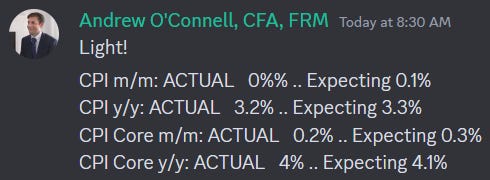 How did he know the CPI was going to come in light?? And how is it that his stock-picking ability improved dramatically in a single day? (kidding)👇