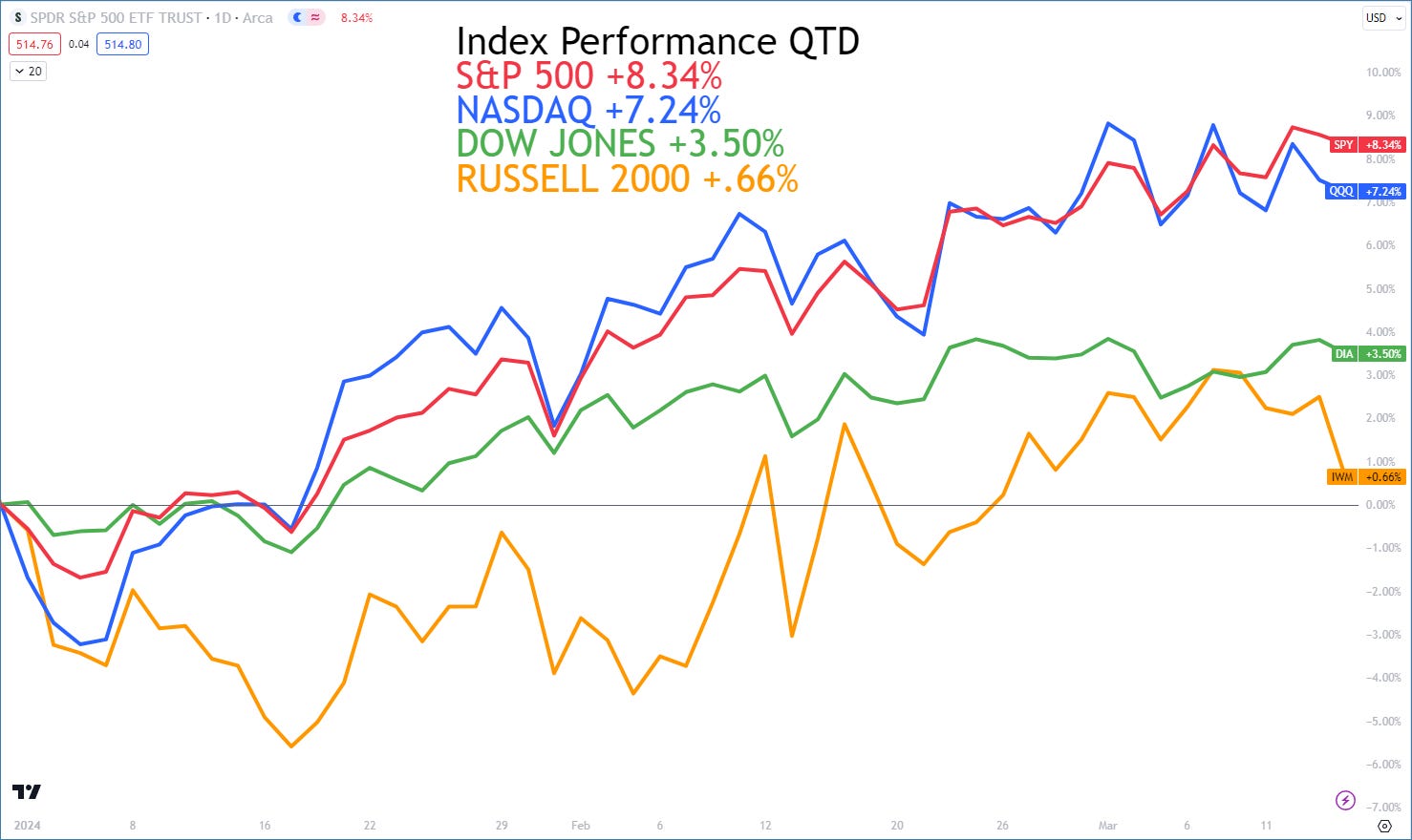 This has been an absolutely stellar Q1, and the closer we get to the end of the month….we could see underinvested players pile in. Asset managers are often judged and/or bonused based on quarterly performance