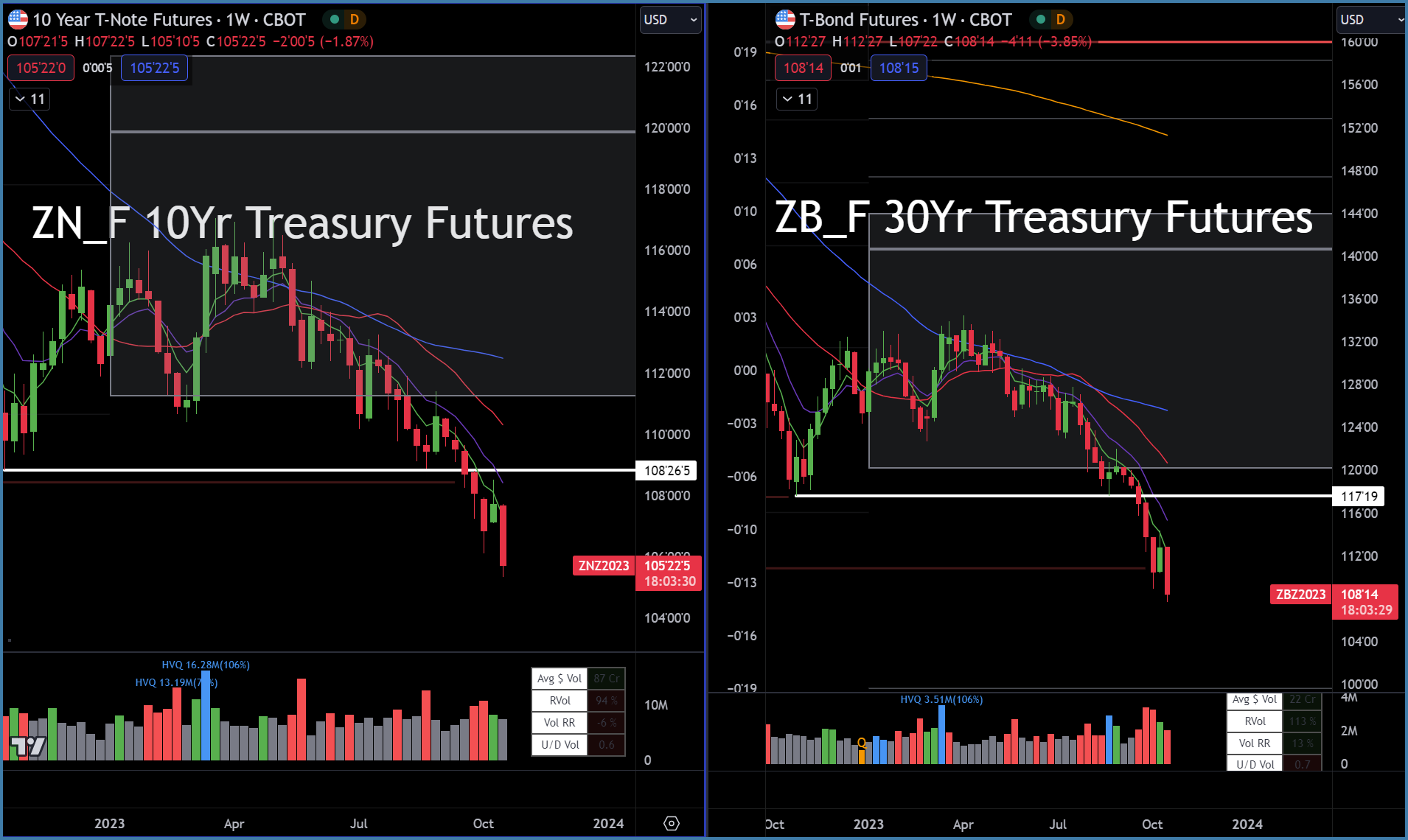 Interest rates remain at the mercy of geopolitical shocks in the middle east. Two ugly weekly candles are forming👇