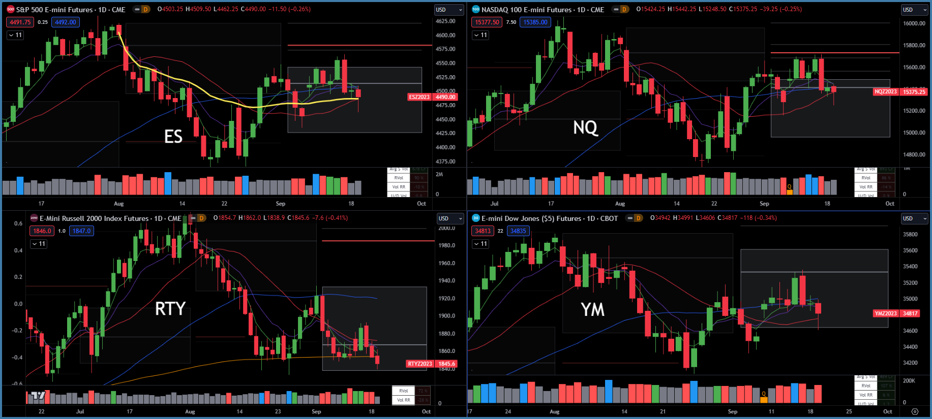 YM Dow Jones - Testing 20 day SMA and below monthly point of control