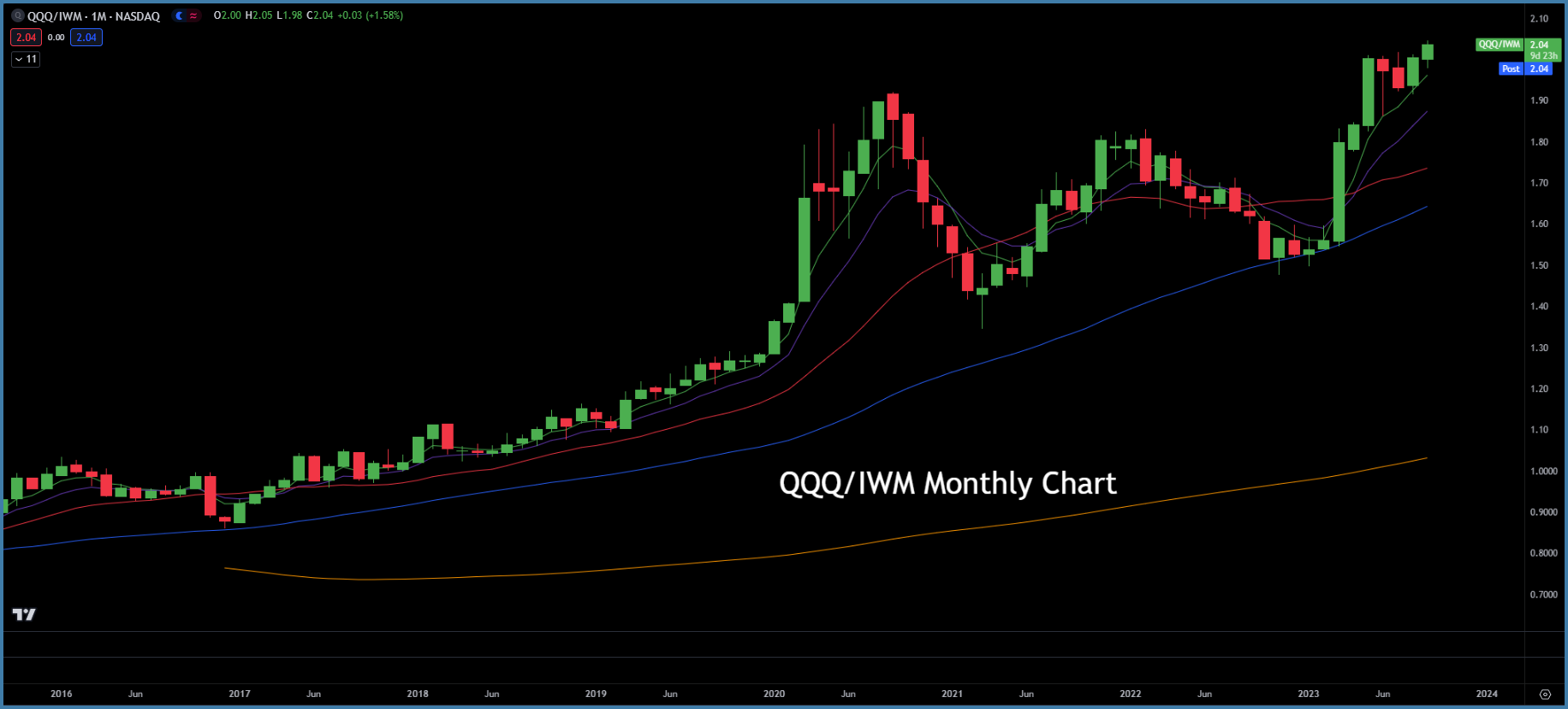 The Nasdaq QQQ outperformance vs IWM Small caps we are seeing is unprecedented.