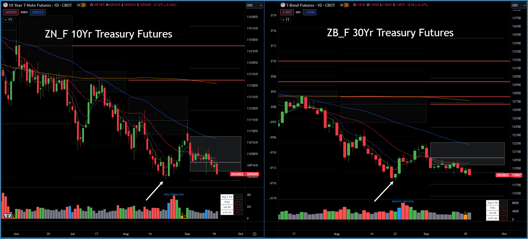 Long-term treasuries are testing their August lows into Fed Wednesday. It does appear that they are sitting on the knife’s edge, and Powell’s remarks will determine if they cascade to new lows, or put in a double bottom.