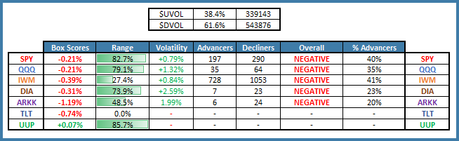 The headline index SPY is holding up, but under the surface the breadth is weak. Today’s session finished with only 33.8% advancers, creating a challenging tape for the active trader.