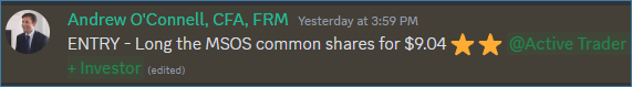 I was fortunate enough to have bought MSOS into the close yesterday!