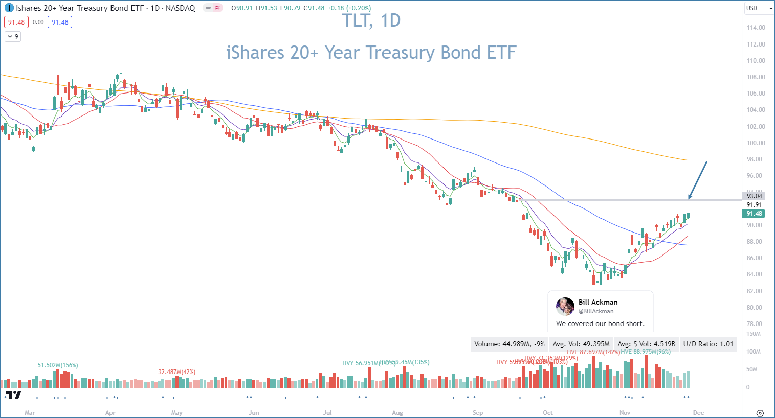 TLT is fast approaching the 9/25 gap fill at $93.04. I love the way that the price action is slowly and steadily grinding higher👇