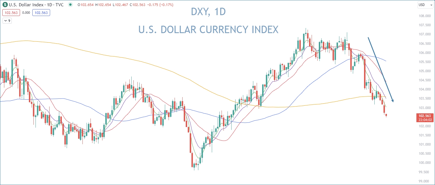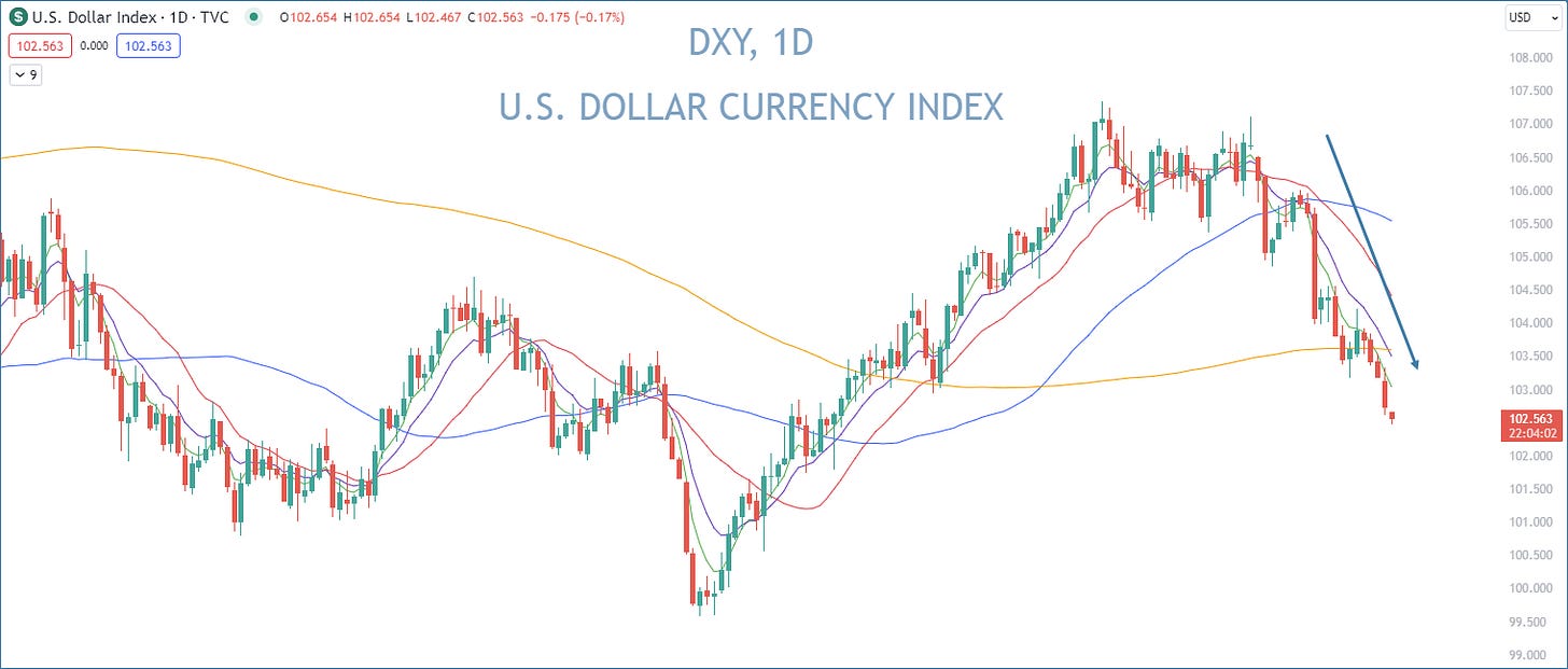 The dollar index chart looks like the TLT chart flipped upside down! Confirmation that the market is pricing lower inflation and growth moving forward ✅