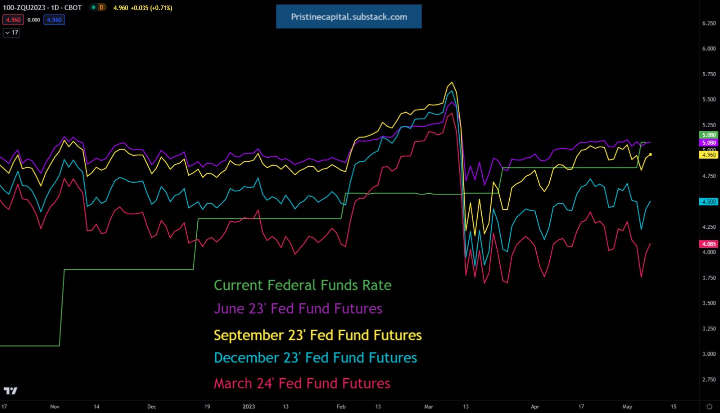 Fed fund futures continue to creep higher, however, the market is still pricing in TWO rate CUTS into year end! What has to happen between now and then for those cuts to come to fruition?