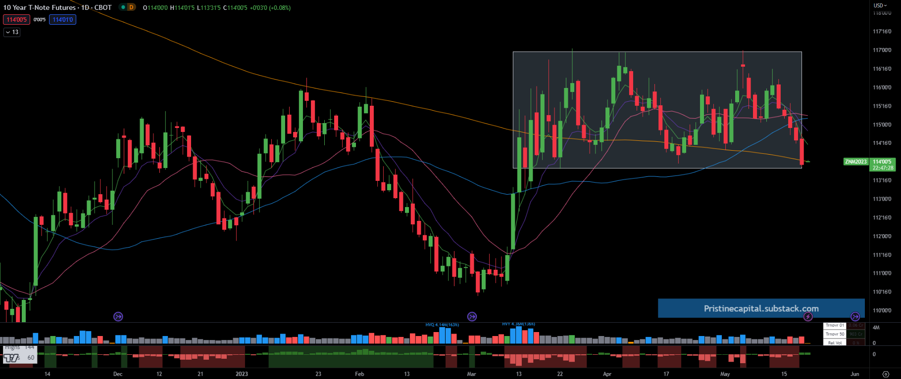 ZN_F 10yr treasury futures finished in negative territory again! Today marked the fifth consecutive session of selling in the long end of the curve.