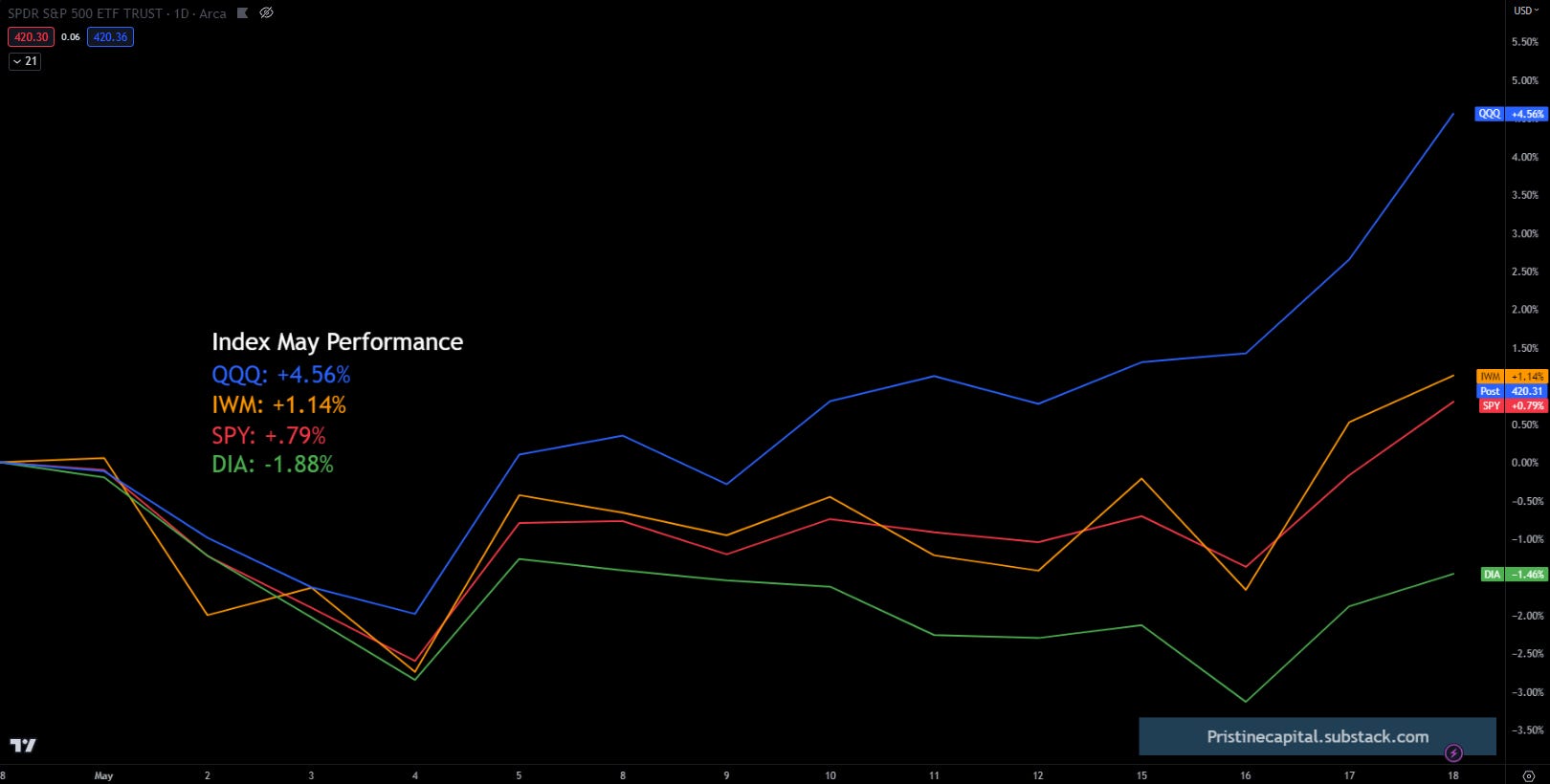 Are we in a blow-off top? Is the debt ceiling going to pass or fail? Are we going to retest the lows? Who cares. Let’s keep flowing with the action and give it our best. No trader left behind!