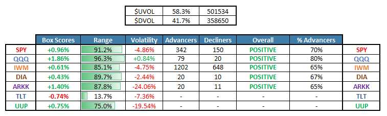 Wow! I was expecting to see 80% or more advancers, but today only had 58.3%. It felt much more uniform than it actually was. The key driver of today’s rally was the growth style factor, which had an excellent day. The UUP dollar index also ripped to the upside, which is unusual for a day where the headline indices finish so strong.