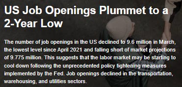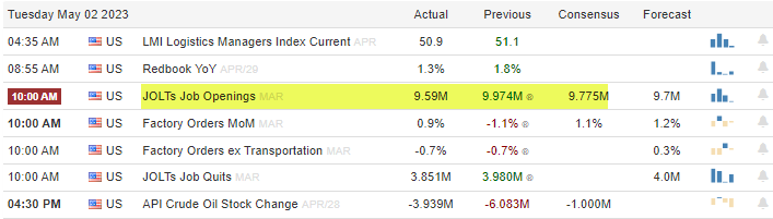 Today’s session kicked off with JOLTs job openings coming in lighter than expected: