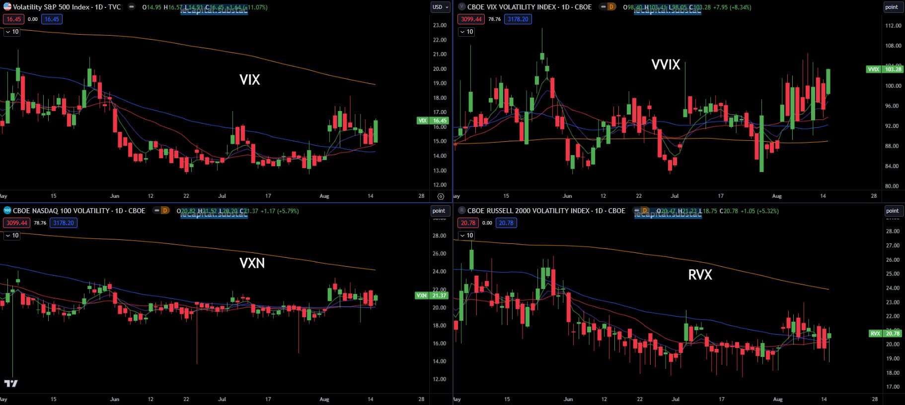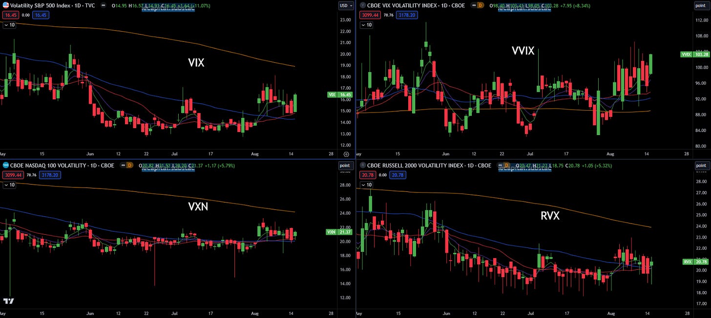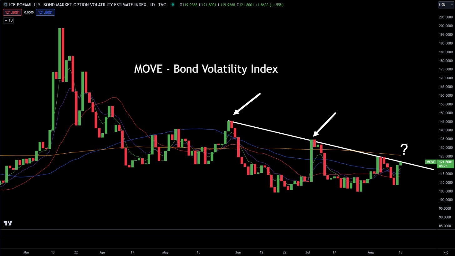Volatility expanded today, but overall is still looks like a coiled spring!
