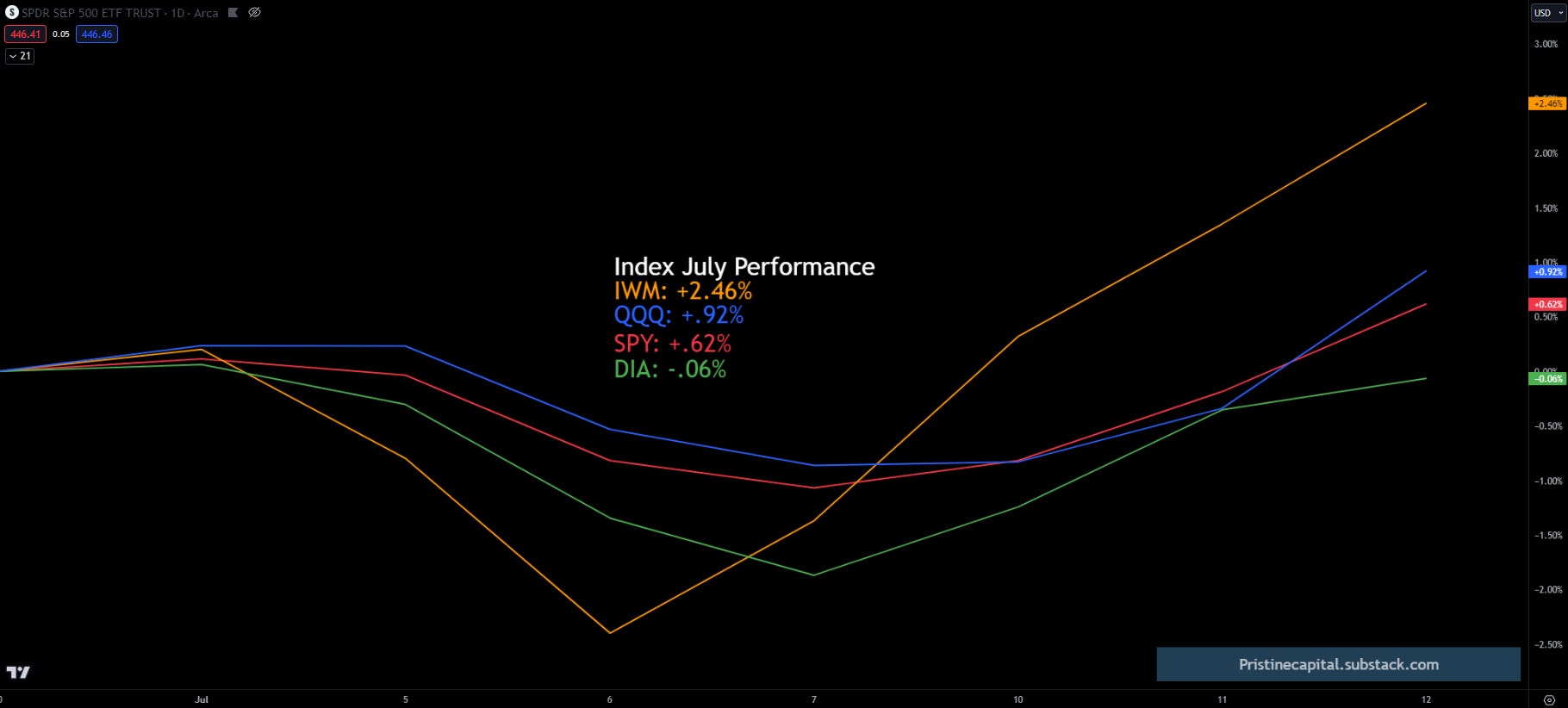 Megacap equities rallied. Important to keep in mind that the specifics of the Nasdaq special rebalance will be announced 7/14. This could impact trade in some of the largest names.
