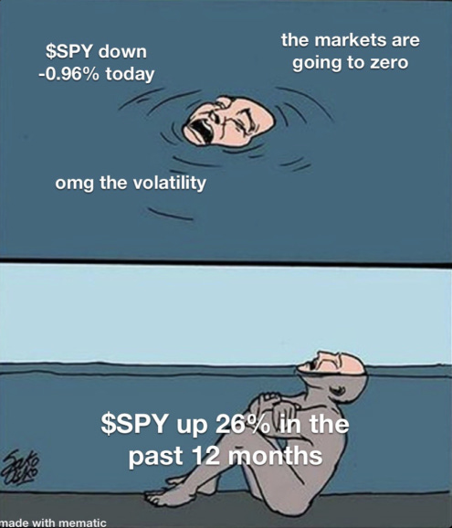 The broad index trends are under pressure! Friendly reminder to anyone that is worried about their portfolio to laugh a little: