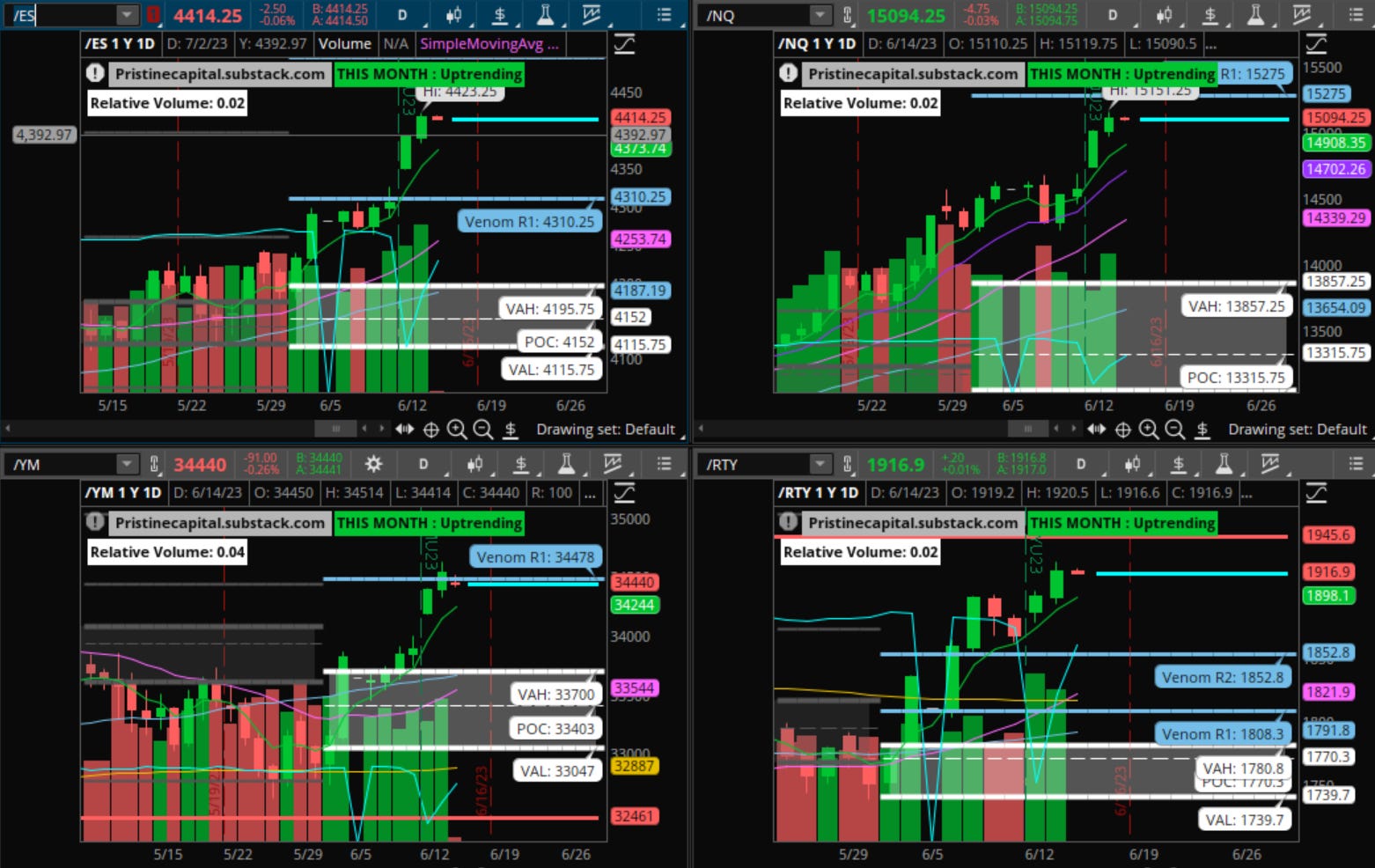 RTY Russell 2000 +.01% after hours (Above monthly value area)