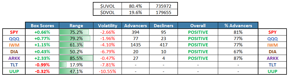 Equities rallied once again, with IWM small caps and ARKK innovation stocks leading the pack. TLT US long-term treasuries still can’t catch a bid!