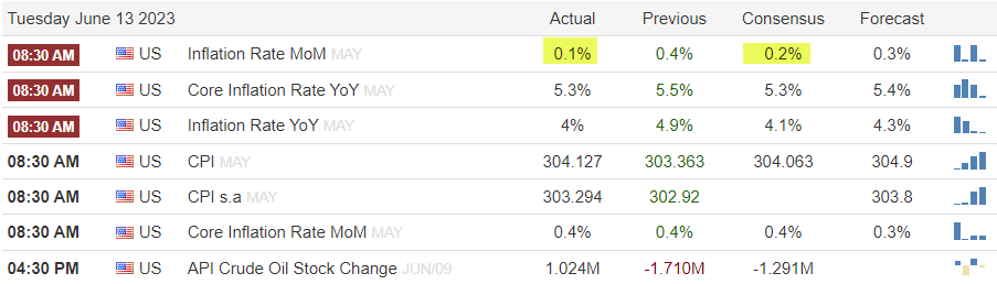 Today’s session kicked off with CPI data that came in lighter than expected: