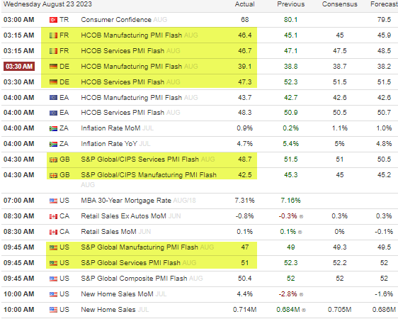 Today’s session kicked off with weak PMI data (sub 50 represents an economic contraction) out of France, Germany, and the UK, followed by below expectations flash PMI’s out of the United States