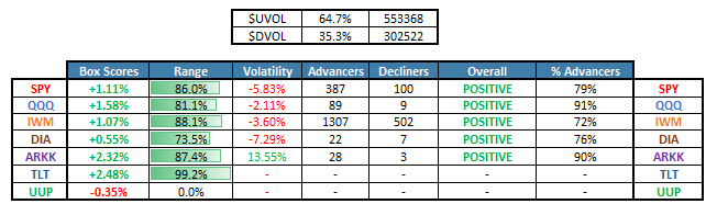 Against the backdrop of weak economic data releases and bonds bid, equities rallied, and the most duration sensitive indices QQQ ARKK led the charge.