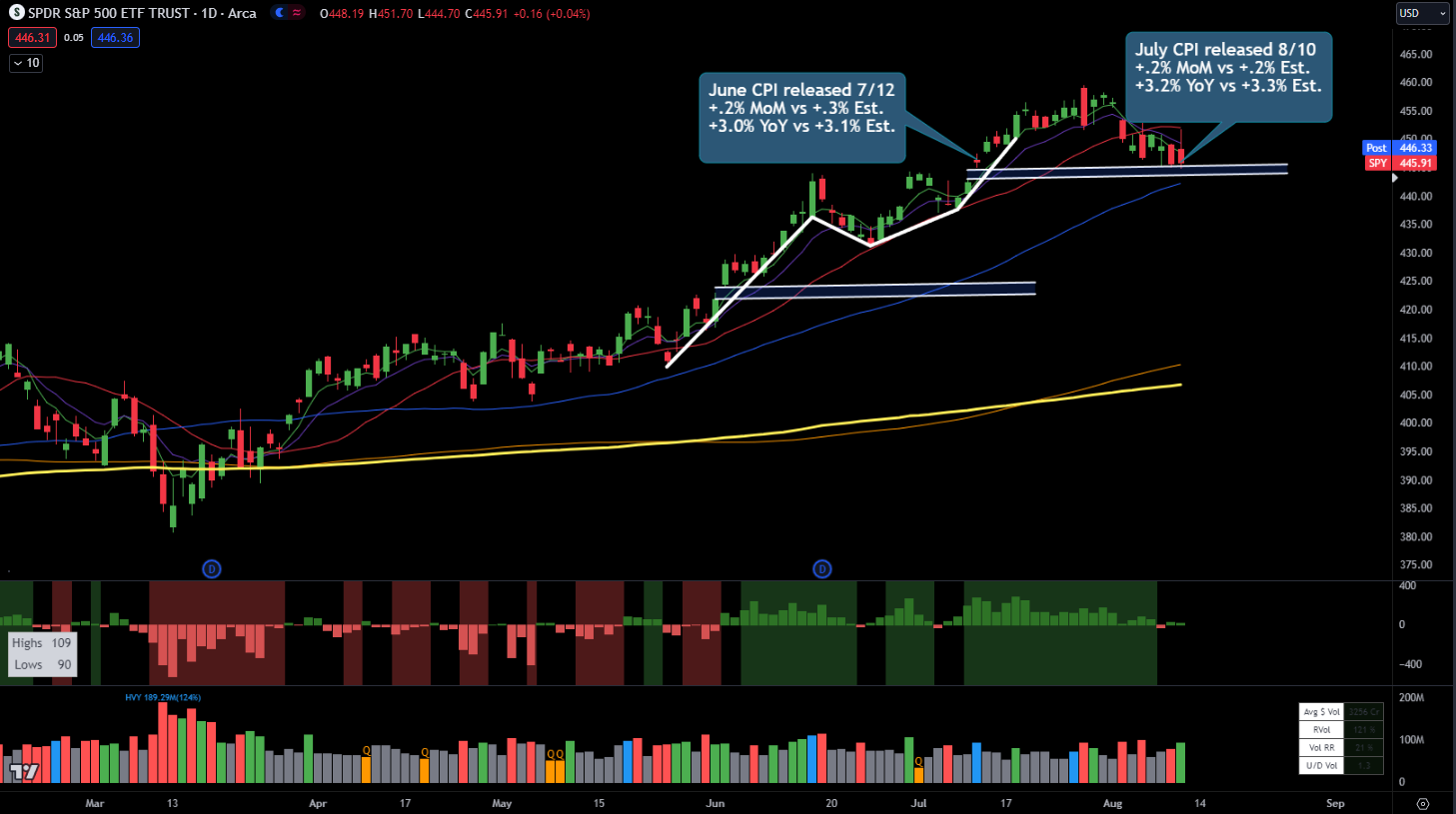 CPI came out largely in-line with estimates, and the SPY S&P 500 is trading at about the same exact level it was at when the June CPI report was released.