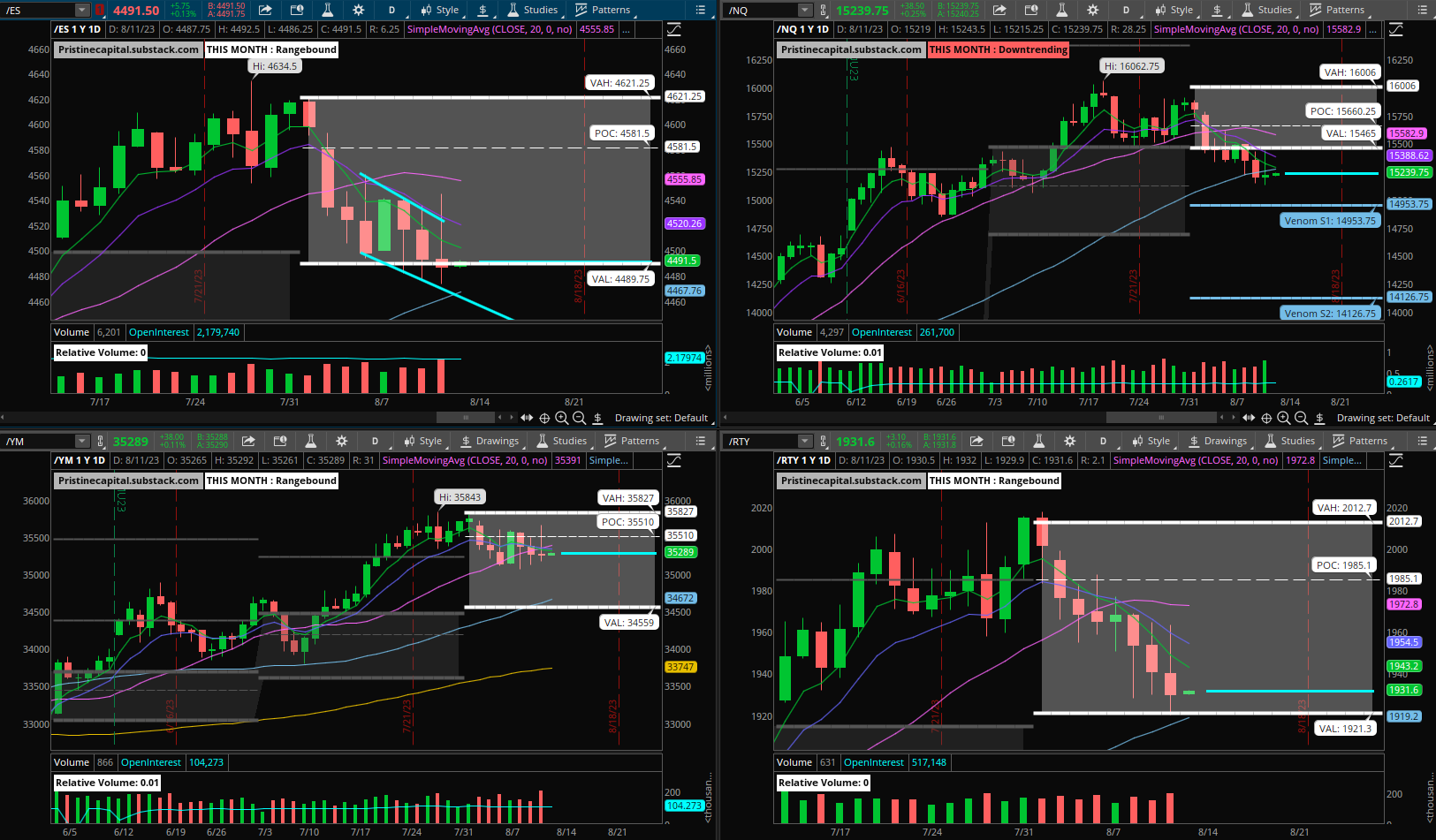 RTY Russell 2000 +.216% - Below 20-day SMA & testing the Monthly VAL