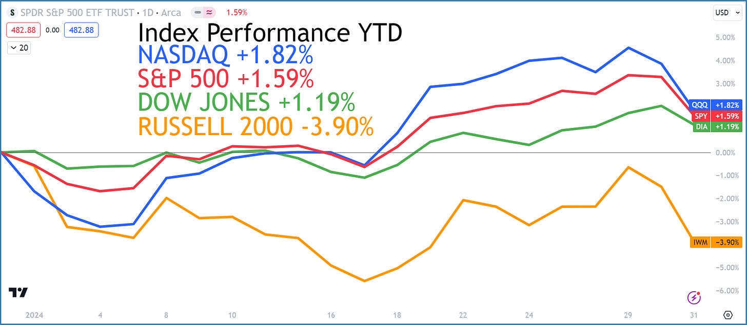 Our quantitative analysis from December said that the odds were high that the month of January is either up small or down significantly. Up until today, it looked like the market was going to have yet another ripper of a month, but in one fell swoop, these indices lost the majority of their gains 👇