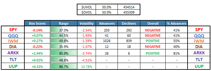 Following multiple sessions of hard selling, equities found their footing and finished…mixed. Breadth was split evenly with 50% advancers and 50% decliners.