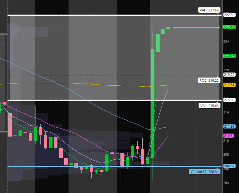 The market maker implied move was +/- 6.3%, with an upside target of ~$221.60, and the stock is currently trading at ~$225 after hours. I wouldn’t be surprised if this name opens toward the highs of the day, but keeping an open mind.