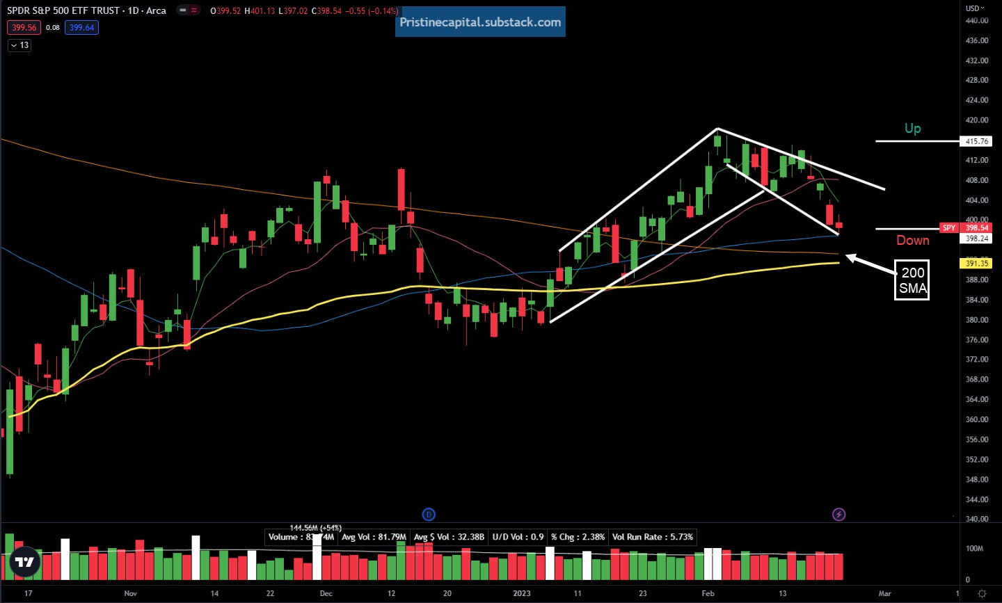 Heading into the week, the options market implied a 2/28 SPY close between 398.24 and 415.76. Well guess what? We are already trading down to the market implied downside target with four trading sessions left to spare.