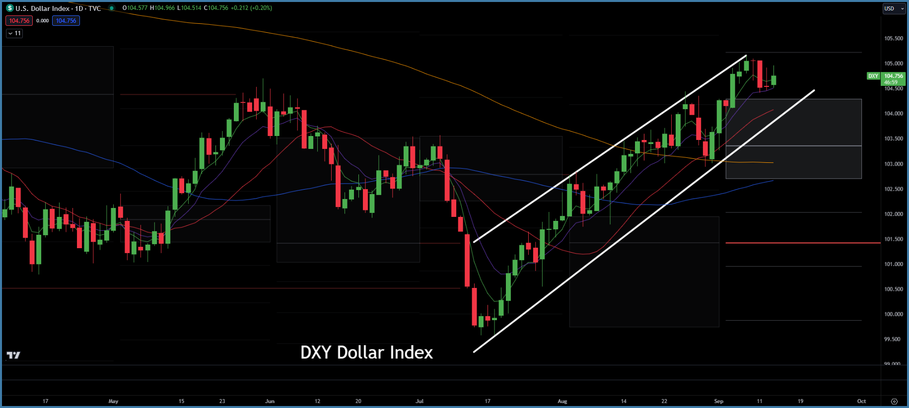 The dollar index remains in its bullish trend channel and put in a green candle.