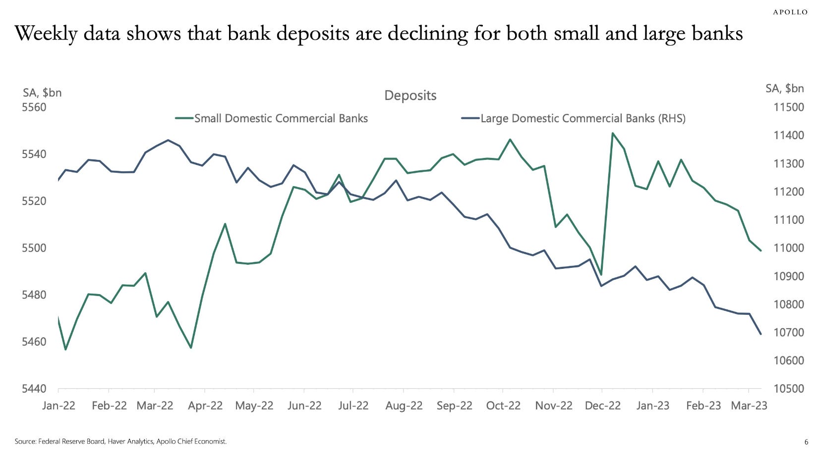 UBS agreed to purchase CS for pennies on the dollar this week. Banking crisis over? As much as we’d love to believe it is, these events are never resolved on a Tiktok timeframe! It’s great that the monetary authorities stepped in, but they likely did so because things are about to get ugly in the real economy. Check this out 👇