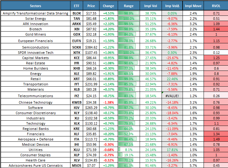Money is rotating from defensives XLV XLP into risk-on TAN ARKK XBI