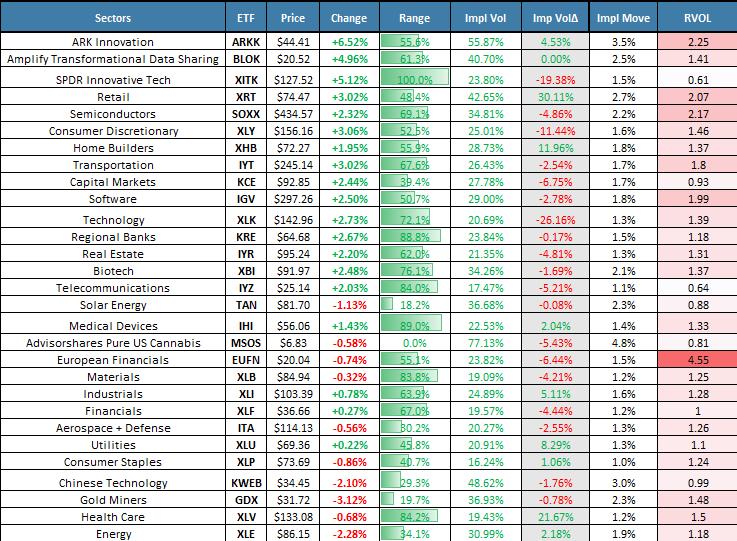 ARKK innovation, XITK innovative tech, and BLOK led today’s session