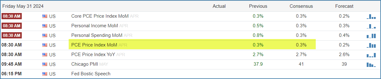 PCE incoming on Friday. This is the Fed’s preferred inflation gauge. I notice that the estimate increased from +.2% MoM to +.3% MoM.