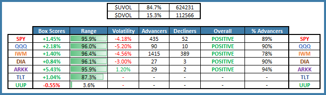 Equity breadth was strong, and the duration sensitive ARKK ETF led today’s action!