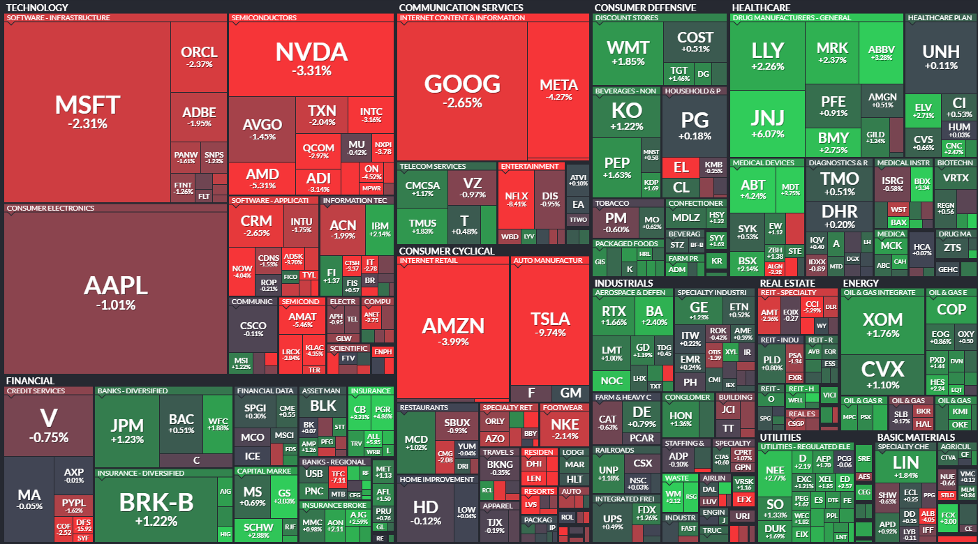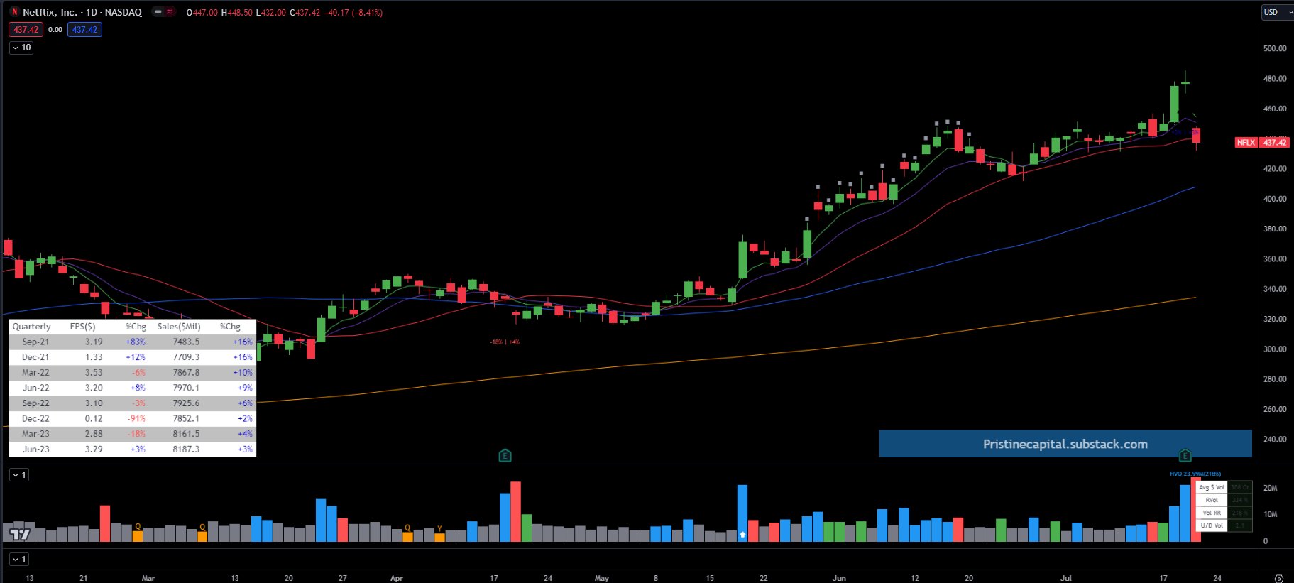 And the market digested earnings reports from two constituents of the Magnificent 7. NFLX finished the session -8.41%