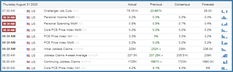 Today’s session kicked off with a flurry of economic data. Jobless claims, and the largely backward looking July PCE data came out in-line with expectations.