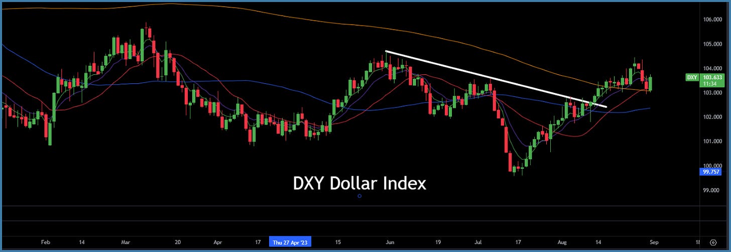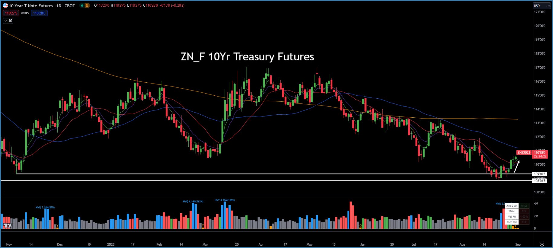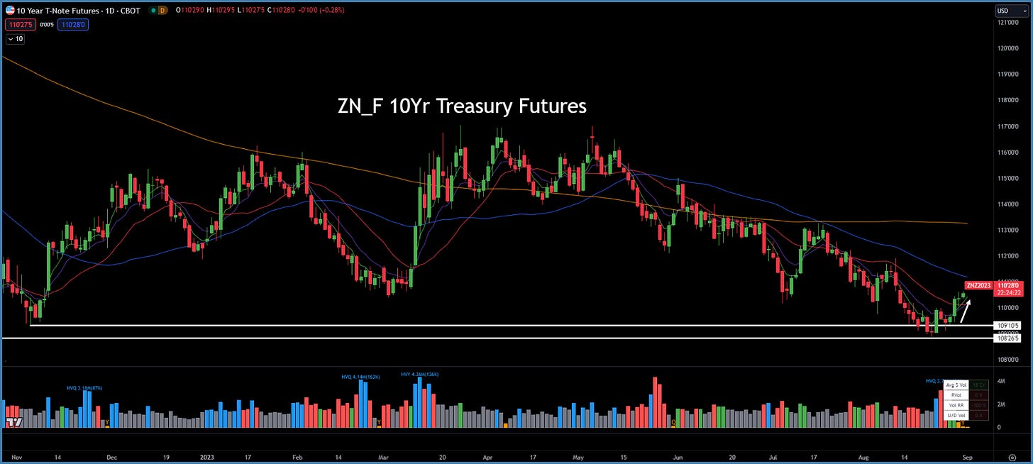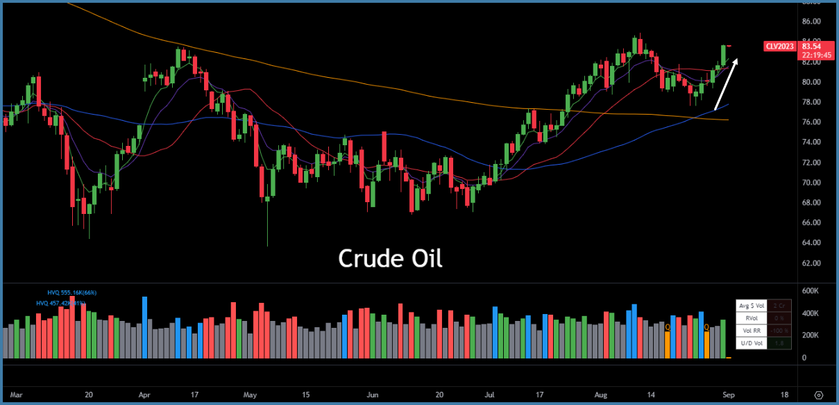 Crude oil finished the month of August with a bang and closed at $83.54/barrel. This move in energy price and commodities more broadly is at odds with the recent bounce in treasuries and tech stocks. Which force will win out?