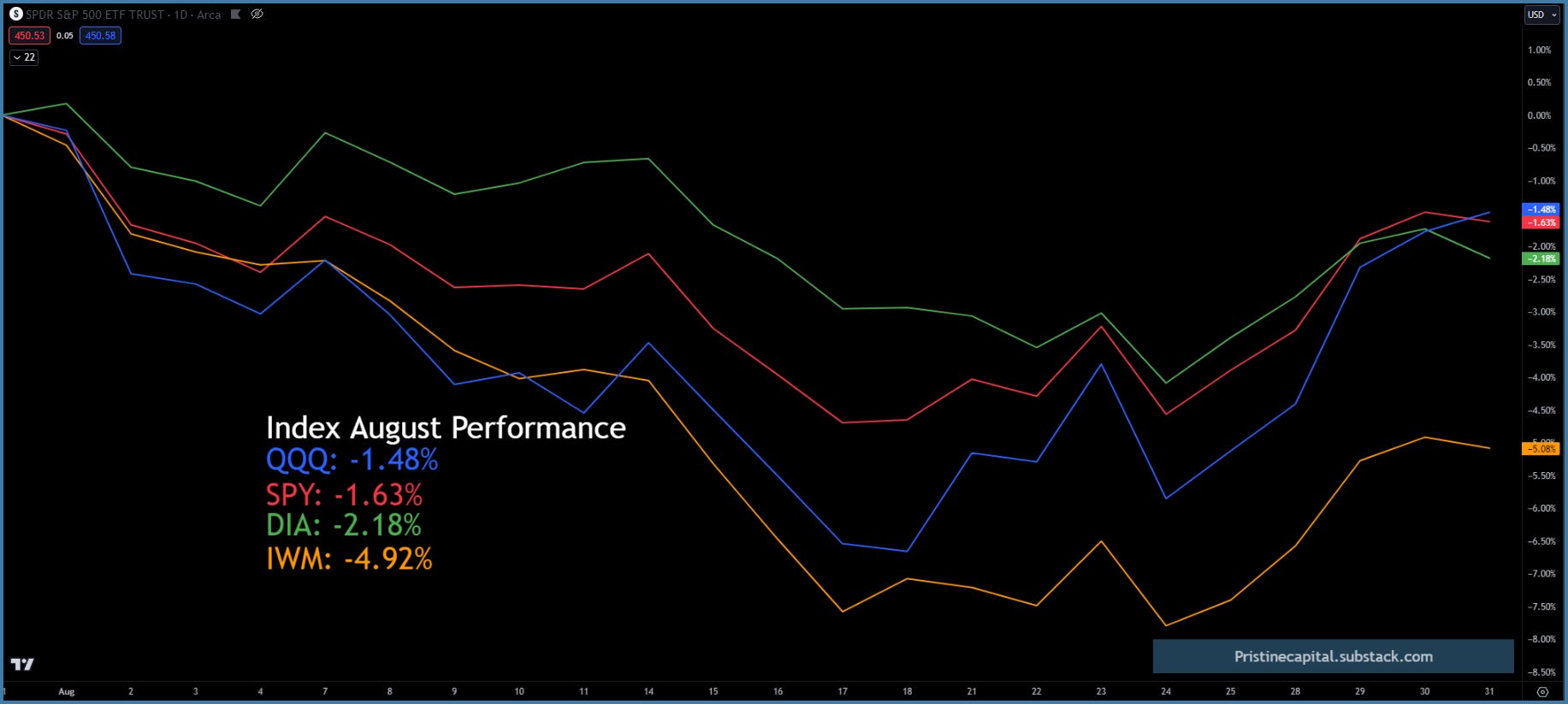 The Nasdaq QQQ came from behind and finished the month of August as the top index performer! This is more evidence that investors have been flocking into the safety of megacap tech and being more cautious of other areas of the market.