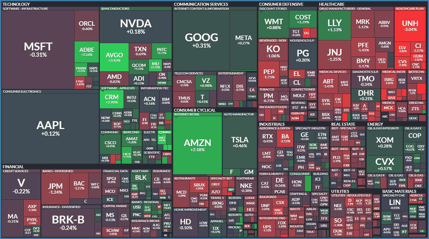 Today’s equity action was not as vibrant as what we’ve seen since the bounce off the equity lows began. The session finished with 42.5% advancers, and the indexes were mixed. Megacap tech and software stocks did most of the heavy lifting.