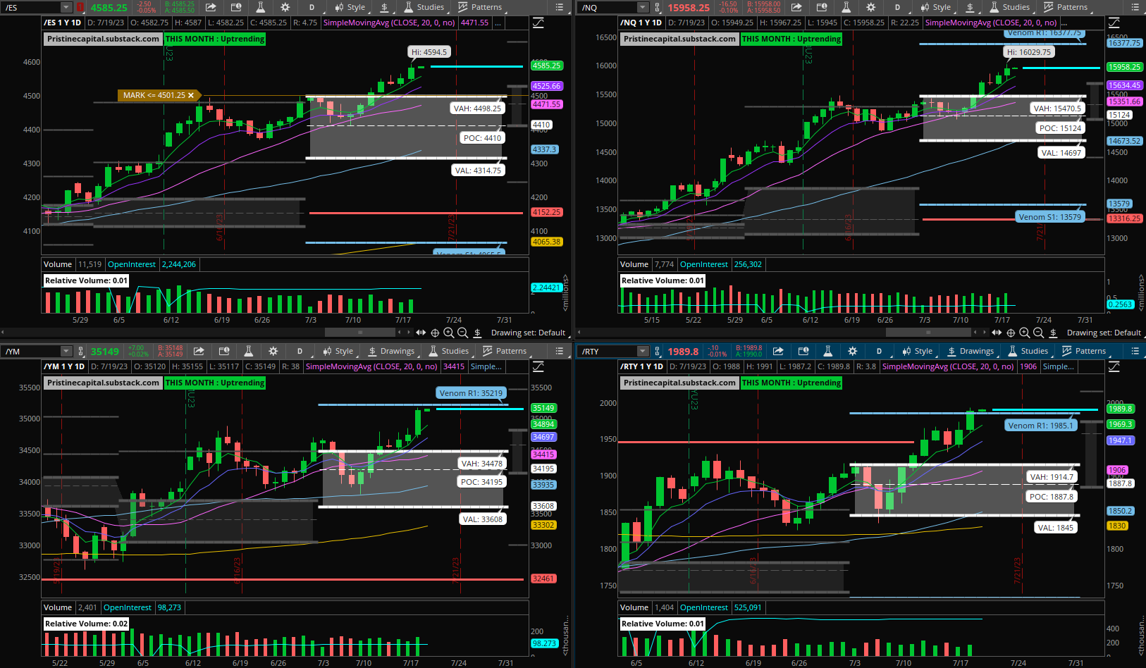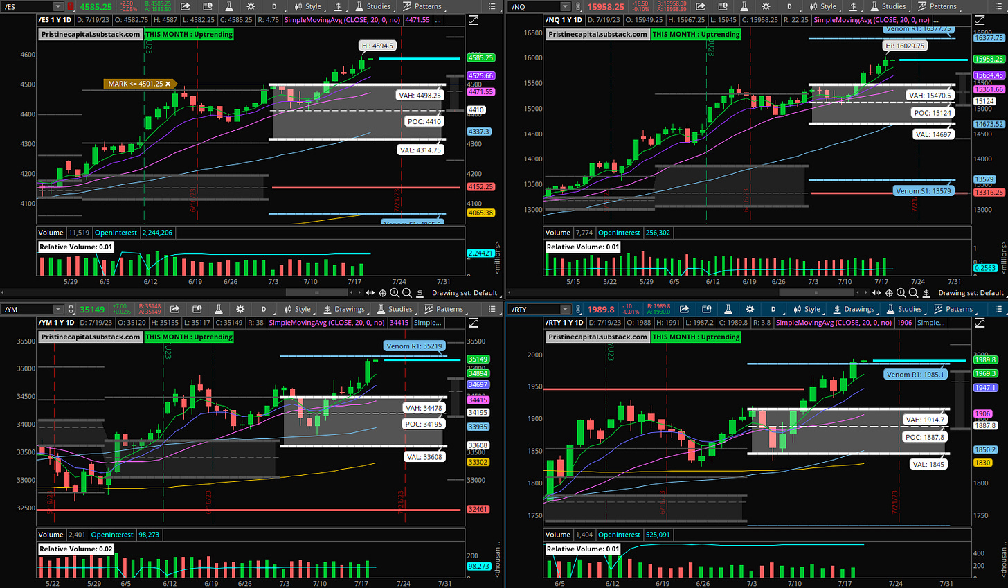I can only remember one similar instance where a group of stocks rallied this hard into earnings on anticipation of fantastic results. It was during the 2020 bull run when software stocks were putting up a banner year and seemed like ‘sure thing’. Many of those stocks put up euphoric runs into earnings, and topped out soon after their reports. The magnificent 7 stocks are having a similar euphoric run INTO their earnings reports, and I believe the same exact thing will happen with this group. Trust me when I say that these companies are not going to ‘shock the world’ with their fantastic results. Investors have been positioning in these stocks all year, and they are now panicking in, chasing prior YTD performance.