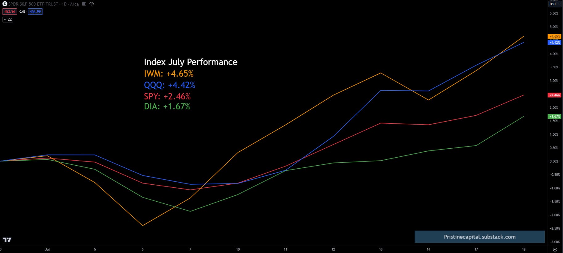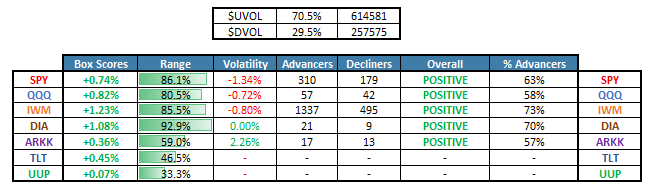 As you can see below, SPY, QQQ, IWM, and ARKK are already trading above the implied weekly move. This does not mean that they can’t go higher, but it does mean that they have already moved farther than market makers thought they would on the close Friday 7/14. I could see this being the case if it was Thursday 7/20, and both NFLX and TSLA reported beat-and-raise quarters…but it is Tuesday 7/18, and NFLX/TSLA haven’t even reported earnings yet!