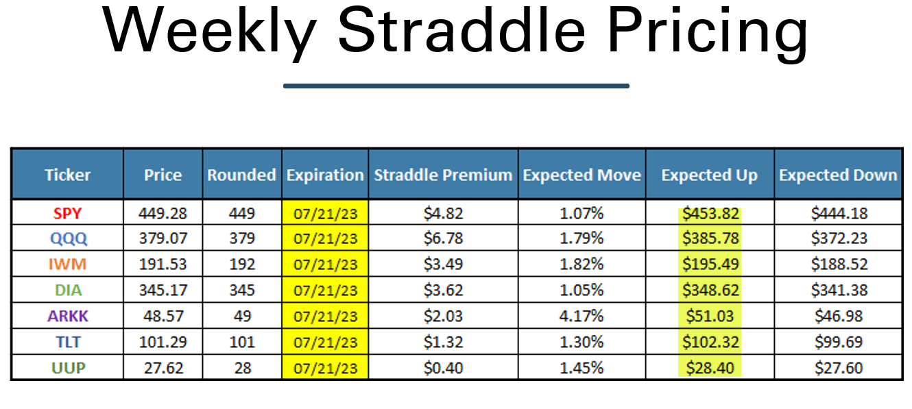 We share the following table of market-maker implied moves with premium subscribers as part of our weekend market analysis.