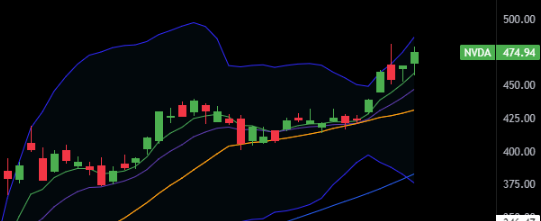 NVDA also trading close to the three standard deviation bollinger band into earnings