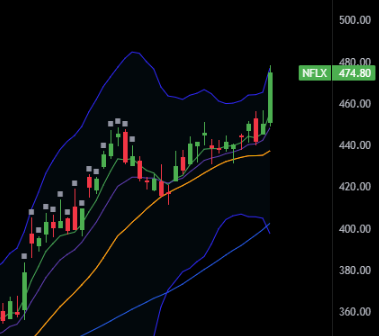 NFLX closed up at the 3 standard deviation bollinger band and put in a +1.9 ATR move. Keep in mind that this name reports earnings…tomorrow! Are investors now playing for a move up to the 4 standard deviation band? The 5?