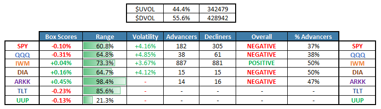 44.4% advancers heading into CPI, with the ARKK innovation ETF leading! 👇
