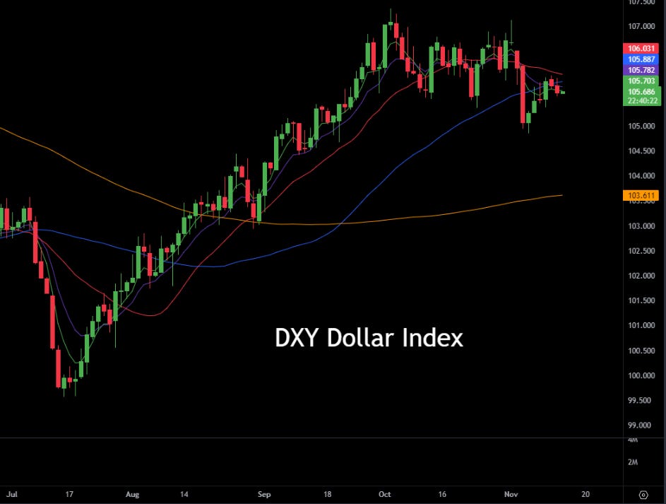 The dollar index is trading below the 20-day SMA, which is bullish for risk assets✅