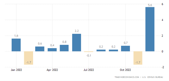 The consensus estimate was for a 2.5% MoM increase, and it came in at a whopping 5.6%: