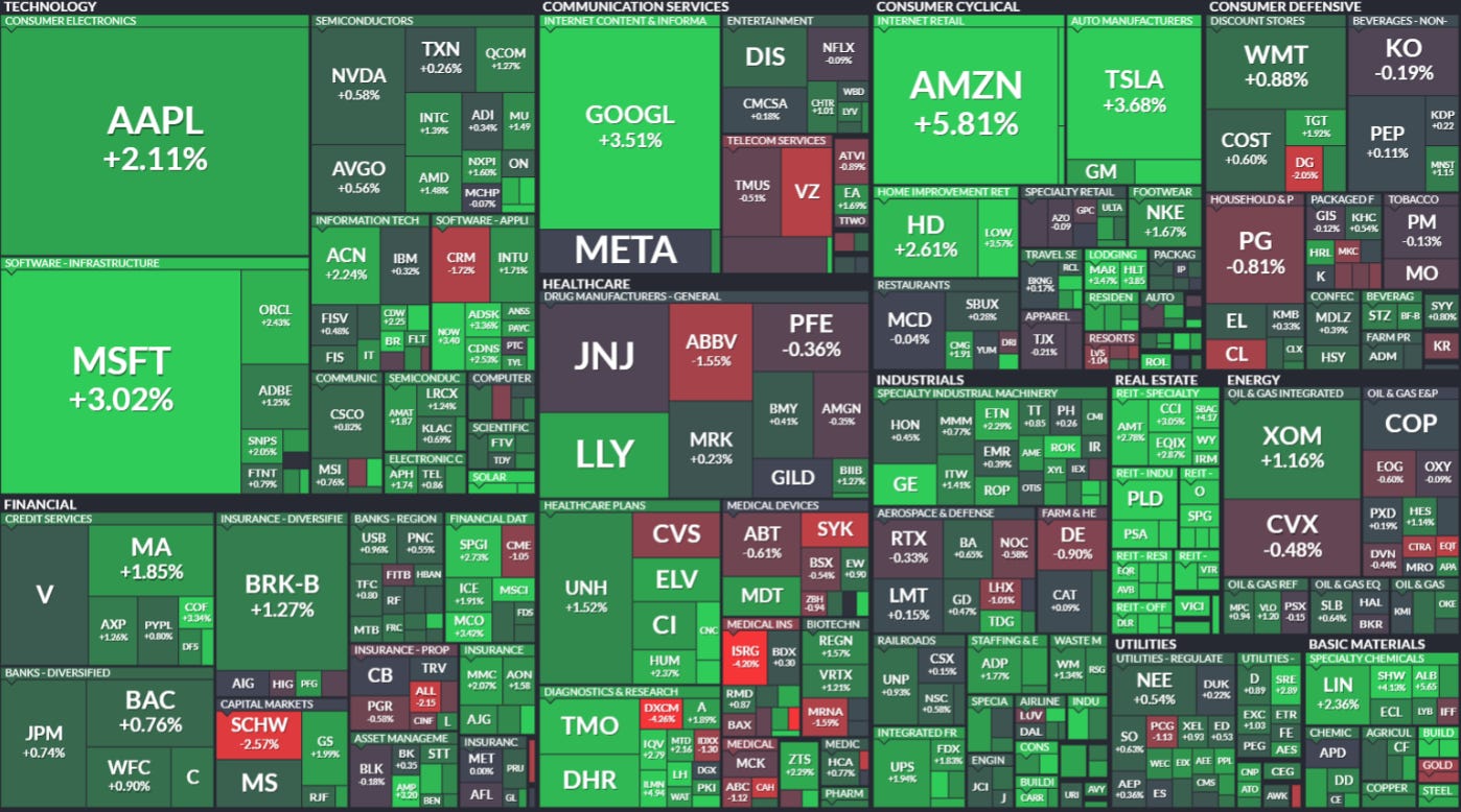 The S&P 500 finished the session +1.26%, and within striking distance of the teal downward trendline! The last three attempts to clear it were met with selling. Could this time be different?
